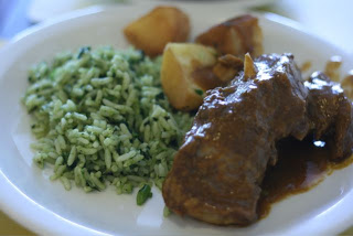 Some time went by and I resolved to try the cabrito touted by the Boteco da Praia, so I headed around the corner. No beer, no cachaça, so don’t worry. The waiters from the night before were all there, and the place was packed at 1.45; lunch is late here. I ordered the goat and a fizzy water, thinking I was clear about the crispy roasted goat (ao forno) served with baião de dois, a dish of beans mixed with rice from the Northeast of Brazil…like Piaui (my son is half Piauiense). But what showed up was cabrito no bafo, a chunk of goat braised in a nice brown gravy. I think the waiter simply fucked up. Yeah, I was disappointed, but after swapping the broccoli rice that came with this dish for the dancing rice and beans (baião is a couple’s dance from the northeast), I was ok with the dish. I’ll hit the roasted version later next week.