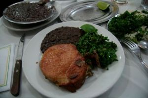 Let’s see, Friday was sort of a wash, except for the Paulinho da Viola rehearsal. I didn’t have lunch, and my galeto dinner was documented in a previous post. Hmmmm. Saturday, since it was to be my last Saturday in Rio, I had to force myself to eat a last feijoada. It was difficult. But the two Jorges (Jorginho do Pandeiro and Jorge Filho) treated me to lunch in a very nice, quiet and clean part of the Laranjeiras neighborhood. I ate some of the food, but I really didn’t have the inspiration. I guess it was good, but not as tasty as Lamas. But the company was fantastic. Jorge Sr told lots of stories about music in the 1940s and ’50s in Rio, choro and samba. And was constantly screwing with me by slightly mispronouncing words and asking me if I liked such and such. The mispronounced noun almost always had to do with the mail organ. He explained that this joking is something that comes from long hours in the recording studio during which the musicians needed someway to keep it interesting during the breaks and down time. Great lunch even if the food was almost repugnant. Too bad, I’m sure it was actually decent.