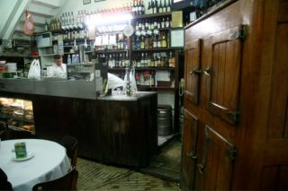 I had a smoked pork chop (Kassler), creamy black beans (called tutú) and collard greens. It was nice, but the smoke flavor was not very pronounced. But the chopp was good and very cold. The waiters are all a bit gruff here, legendarily so, but they get away with it, maybe it’s become traditional. You have to pass an asshole test to get a job at Bar Brasil, but I think the last test was administered more than 30 years ago. Yes, they are that old! Still, the place is an experience and should not be missed. The old wooden refrigerator next to the bar is a working relic!