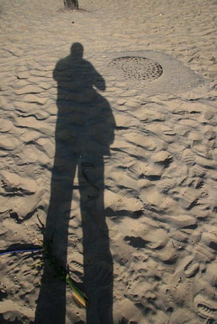 After the feira, I walked over a block to the actual beach of Ipanema to shoot a couple of photos. Here is finally a photo of me on the beach, about the only way you’ll find me on the beach.