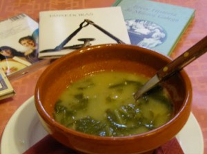 I ordered some steamed mussels the other night. And that’s exactly what I got. A plate of steamed mussels. No nuttin’ in them except water. I make steamed mussels, but I first saute some garlic in olive oil, maybe add some red pepper flakes, then throw in some white wine, some Italian parsley, maybe a basil leaf or two, then the mussels and steam them for 3 minutes or so. Oh, yes, salt and pepper. The result is delicious, flavorful and rich. The broth from the mussels combines with the wine to make a yummy liquor to sop up with bread. In Galicia, forget it. Bland. Salads are mundane. Meats are mundane. Cooked vegetables are mundane. Now I did have a nice bowl of lentil soup yesterday, and two out of three bowls of the ubiquitous caldo galego, a soup with turnip greens, potatoes and white beans, cooked in meat broth of some sort have been ok; one had NO salt whatsoever and I had to keep adding it.
