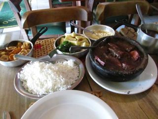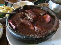 Anyway, here are some photos and a short video of the bubbling clay cauldron of meats and bean broth.