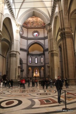 I was shocked at how spare it was, there were no grandiose statues, or much other art on the towering stone walls. Instead, a few stingy frescos dotted the walls, and even the grand marble floor was nearly devoid of any seating for the church’s still regular services. I later learned that, over the years the Duomo’s at one time numerous works of art were removed to a museum across the piazza where they are guarded under better conditions. Since many of them are important and priceless works by Michelangelo, Donatello, Brunelleschi, Ghiberti, di Cambio, della Robbia and many others, they needed to be placed outside the reach of vandals, both human and environmental.