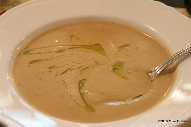 A few well chosen ingredients comprise most dishes, and knowing this list, it is fairly easy, given high quality ingredients, to replicate the flavors. So his pumpkin, yellow bell pepper pumpkin and bean soups, actually purees called passato, have become staples. The newest passato which I had twice this trip is of porcini mushrooms. This will be difficult to reproduce in my kitchen because we just don’t have fresh porcini in any quantity or regularity. But I will attempt it with dried porcini for their flavor, and fresh mushrooms such as portobellos for their texture. I’ll come close.