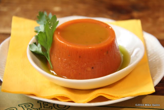 Another unusual dish I have fallen in love with is called gelatina de pomodoro, literally, tomato gelatin.