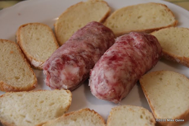 The other dishes I had over the last days were delicious chicken meatballs, a plate of seasoned raw pork sausage, and another long-time favorite, a sformato of sheep’s milk ricotta and potato, the one dish I have yet to conquer in my own kitchen. But someday I will, someday I will. The problem is, the texture Fabio achieves if very silky, but American cows’ milk ricotta is very grainy, whereas Tuscan sheeps’ milk ricotta is very smooth. I may never get the exact texture, but I will get the flavors. By the way, a sformato is sort of a flan/souffle hybrid…sformare means to unmold, so these are typically made in some sort of mold, then unmolded for serving! Some of these Italian concepts are strange in English and there are not direct translations. Hell, even flan and souffle are not English words!