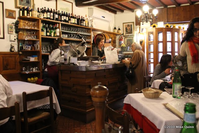That night for supper I went to another mostly for the locals place called La Vecchia Bettola which features a very, very traditional Florentine menu including a great porterhouse steak, a wonderful fried rabbit with artichokes, yummy oven roasted pork loin and a fantastic boned then stuffed roasted chicken, one of the best things I’ve ever eaten; unfortunately it’s been years since I’ve seen that on their menu. Once when I ate there, about 1994, an Elvis impersonator came in and sang a song. Hardly raised an eyebrow. Great little place. Oh, the now famous dish, penne with vodka sauce was supposedly invented here. They call it Penne alla Bettola…highly recommended.