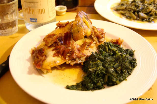 For my second piatto (plate, but really, course), I had an oven-roasted guinea hen, in Italy very common and called faraona. Yummy, juicy and tender, far better than any typical American chicken. If you go to Italy, keep an eye out for it on menus, especially in Tuscany and Emilia Romagna. Worth the effort.