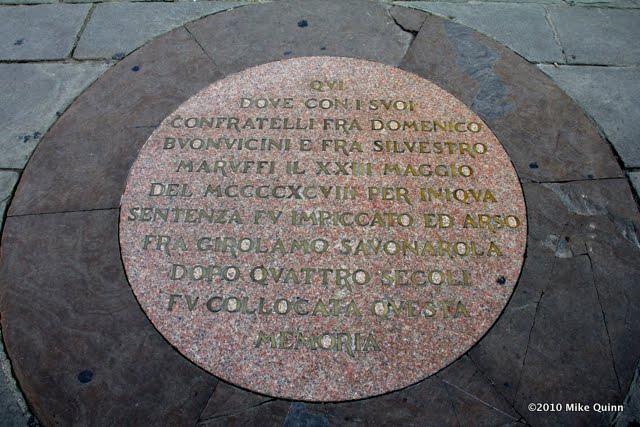 was once home to the Medici family, before they built a couple of new palaces. It was and still is, the town hall of Florence and contains some fantastic art; in the middle of the piazza is a plaque indicating where the fanatic monk Savonarola was burnt at the stake, just where, a few years before, he conducted the actual Bonfire of the Vanities…he’d convinced many well to do Florentines to burn their evil books, paintings and so on so they could more easily get to heaven;