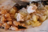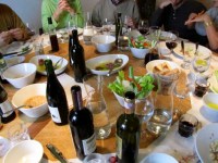Ok, there is a bit more than meat at this litte repast. The table is punctuated with vases of raw vegetables—pinzimonio—including celery, fennel and artichokes, to be dipped in olive oil. Platters full of roasted potatoes and bowls of white cannellini beans were also kept to overflowing—the potatoes were frosted with small scoops of Dario’s whipped pork fat, his burro del Chianti (Chianti butter), just to up the ante even more. Bread was plentiful. The wine flowed faster as the food parade continued.