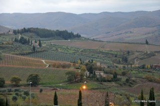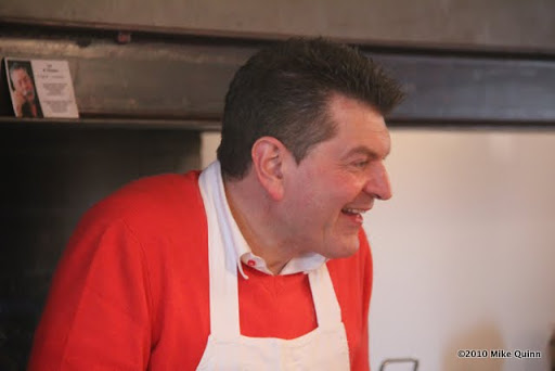 The Officina is offered a few nights per week, plus Sunday afternoon which was the time slot we chose. So late on a gray Sunday morning, we grabbed a bus from Florence to Panzano—just a few miles as the crow flies—but an hour, at least, by bus negotiating the winding roads meandering through the Chianti hillsides. Upon arriving, maybe 45 minutes early, we entered the butcher shop which has turned into a rather animated and amusing meeting spot for locals and tourists alike, most of whom are there to eat in one of Dario’s meat palaces. The first thing that happens as you enter the shop is someone hands you a glass, then fills it with ruby red Chianti, smiling broadly with a distinctly small town welcome. Yeah, Baby, this is the way to live!