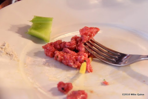Not long after, food began arriving—and it would continue arriving for the next two hours! First up was a plate of what Dario calls “Chianti Sushi” which is chopped raw beef, or carne cruda. Needless to say, it was delicious, light, fresh and almost refreshing, especially in comparison to what was to come later.
